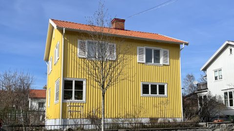 Ny underlagspapp RC Classic YEP 2200 kk, läkt, Monier Vittinge 2-kupigt lertegel T-11 har monterad. Nya hängrännor, stuprör, fot och…